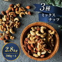 【ふるさと納税】厳選 3種 ミックスナッツ 2.8kg 素焼き アーモンド 生くるみ 素焼き カシューナッツ 熊本県 和水町 送料無料 くまもと おやつ 子供 食育 大容量 ダイエット食 健康食